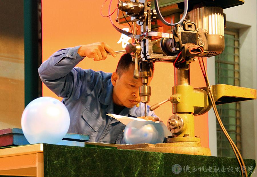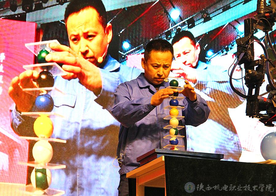 霍威同志从自身经历和感悟给在场师生生动讲述了他在平凡的工作岗位上所做出不平凡的成绩,以及成绩背后常人难以想象的艰辛付出和心血汗水,充分展示了“爱岗敬业、争创一流,艰苦奋斗、勇于创新,淡泊名利、甘于奉献”的“工匠精神”,其饱满的激情和动人的故事,赢得了同学们的阵阵掌声。他还凭借高超而精湛的技艺,为在场师生展示了“钻头在气球上钻纸、纸破气球不破”和“垂直垒台球”两项实操绝活,赢得了满堂彩。