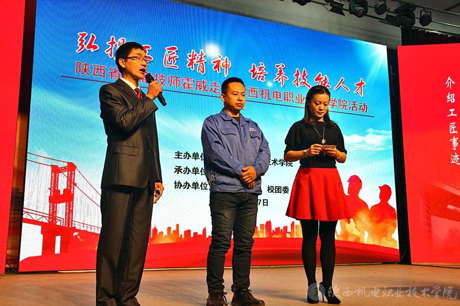 12月27日,陕西机电职业技术学院以“弘扬工匠精神,培养技能人才”为主题,举办“工匠进校园”活动,邀请省级技能大师工作室负责人、陕西省首席技师、陕西群力电工有限责任公司高级技师霍威走进校园,与学生面对面现身讲解、交流互动、展示实操绝技,旨在传递正能量,激励学生弘扬工匠精神、提升职业素养,在最美的年龄做最值得的事。学院党委副书记邓新治、副院长张新堂和各教学部门负责人及1000余名师生参加了活动。