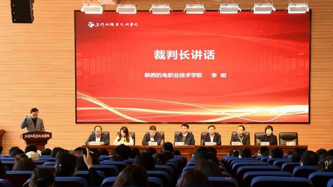 此次大赛由河南省教育厅主办,三门峡职业技术学院承办。三门峡职业技术学院党委书记杨彤、院长颉潭成、河南省教育厅职成教处主任刘东洋等相关领导出席了开幕式。李明代表全体裁判员致宣誓词。